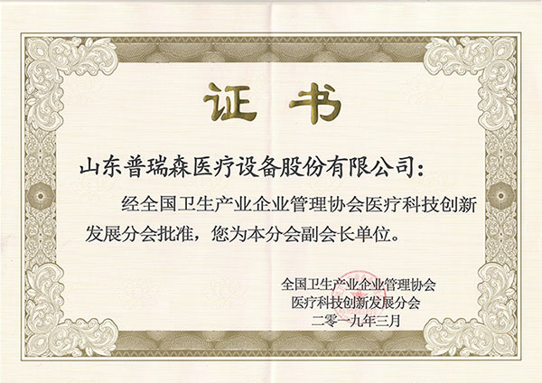 熱烈祝賀山東普瑞森醫(yī)療設(shè)備股份有限公司被評(píng)為副會(huì)長(zhǎng)單位