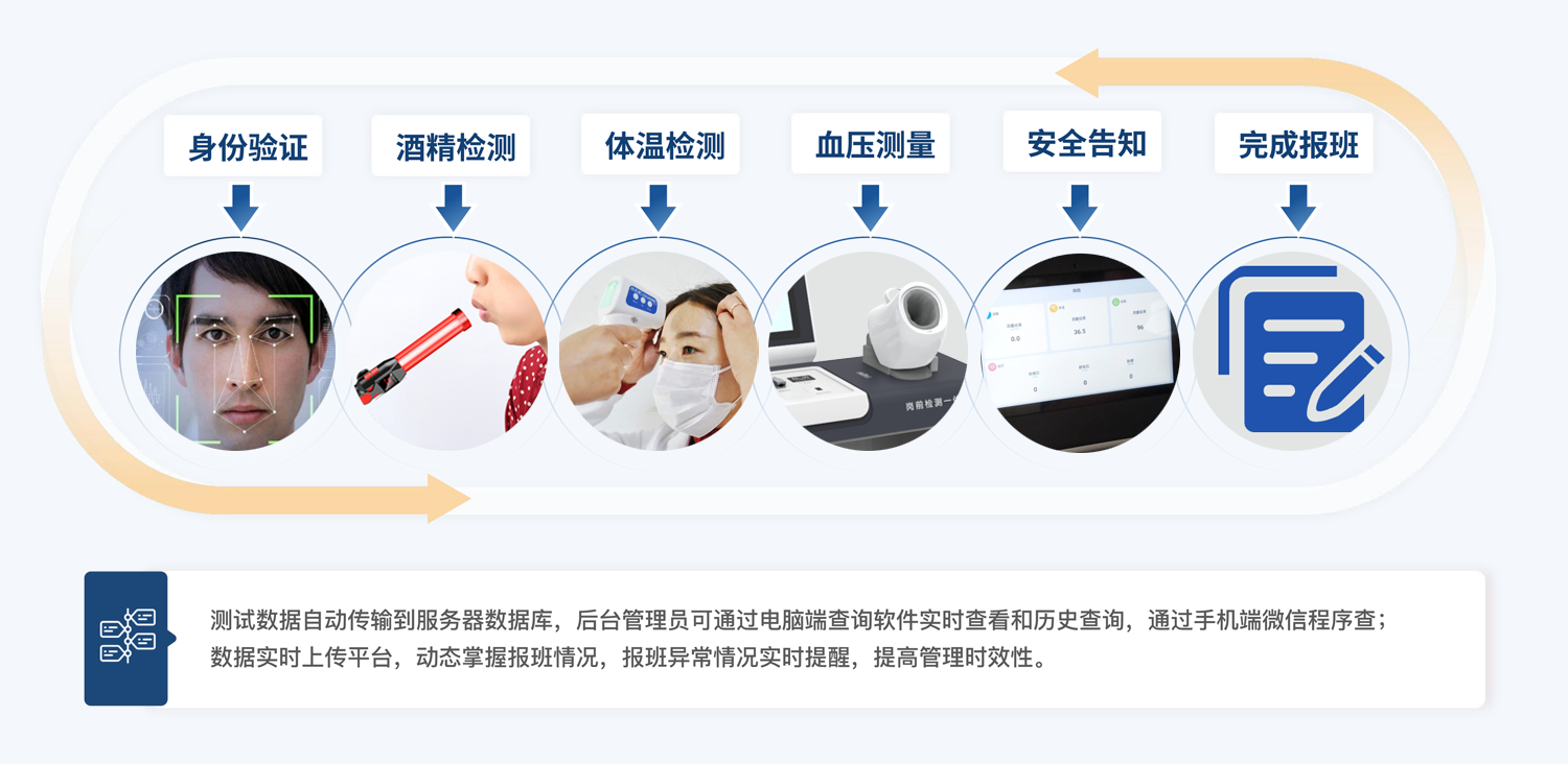 崗前健康檢查一體機(jī)是一種用于進(jìn)行員工健康檢查和篩查的設(shè)備,可以通過指紋識(shí)別、人臉識(shí)別等方式快速登錄,并可準(zhǔn)確地檢測員 工的健康狀況,包括 血壓、心率、酒精、體溫、血氧 等多個(gè)項(xiàng)目,對(duì)于符合上崗健康狀態(tài)得員工允許考勤打卡。