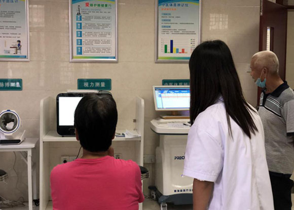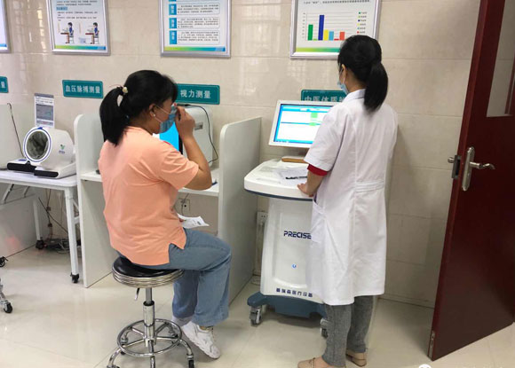 “公共衛(wèi)生智能健康管理中心”設(shè)備齊全、環(huán)境溫馨,處處彰顯了醫(yī)院的人文關(guān)懷,可實現(xiàn)公衛(wèi)體檢和健康體檢功能,便于醫(yī)院后期開展健康體檢業(yè)務(wù)。該中心圍繞著公衛(wèi)體檢、慢病管理和健康教育等內(nèi)容開展,運用互聯(lián)網(wǎng)、物聯(lián)網(wǎng)和移動通信技術(shù),通過有線、藍牙、wifi等傳輸方式,將公衛(wèi)數(shù)據(jù)采集所需要的設(shè)備整合在一起,居民可以通過刷身份證自主登記、自主測量身高體重、血壓、中醫(yī)體質(zhì)、視力等檢測項目,自主查詢體檢結(jié)果。